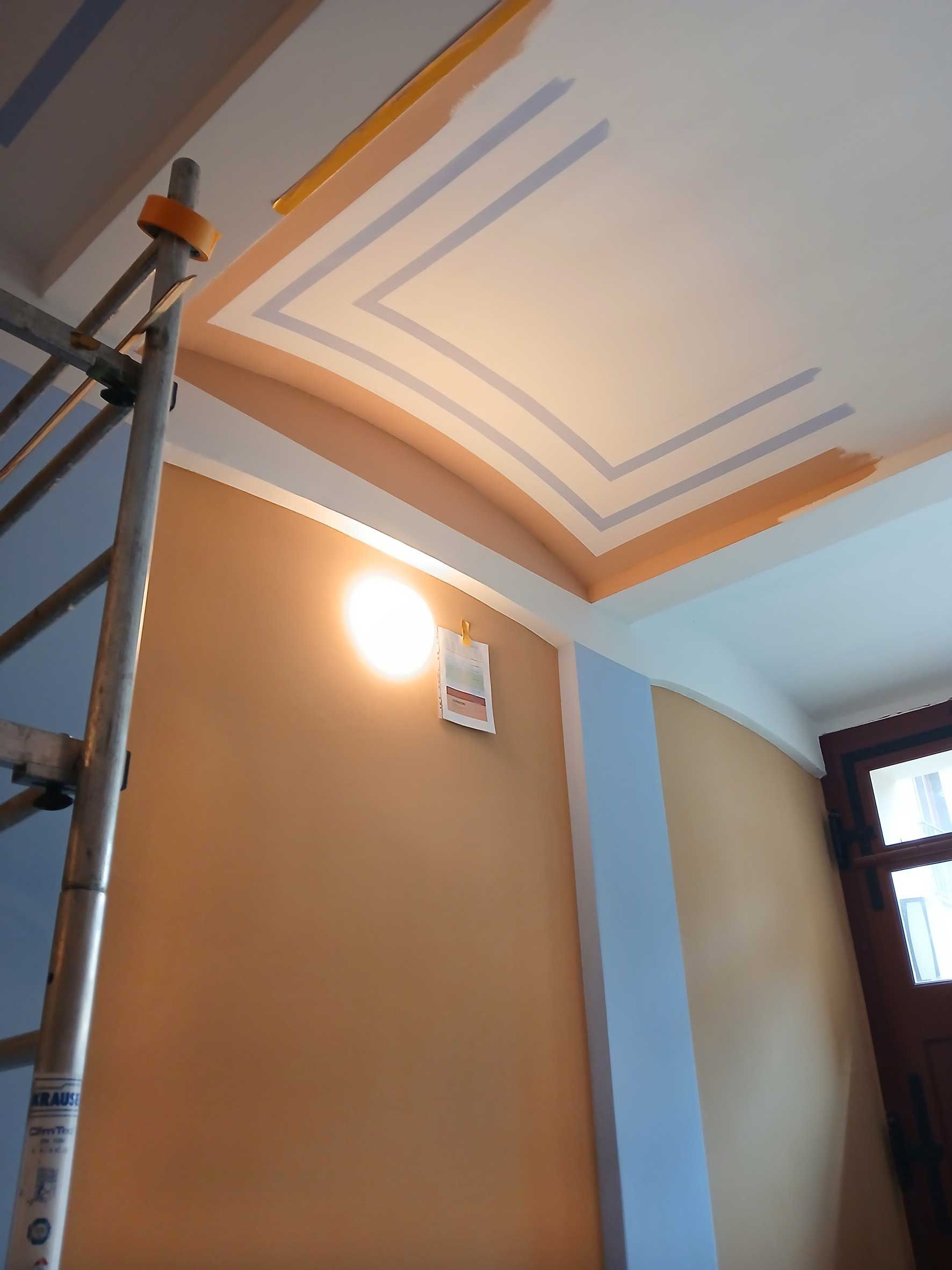 In dem frischrestaurierten Gründerzeithaus von 1883 restaurieren wir aktuell die Treppenhaus- und Hauseinfahrtsgestaltung.